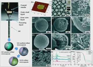 Engineering high-performance cathodes for high energy-density lithium–sulfur (Li–S) batteries is quite significant to achieve commercialization. Here, we develop a graphene oxide scaffold/sulfur compositeencapsulated microcapsule (GSM) for high-performance Li–S batteries, which is prepared through the coflow focusing (CFF) approach. The GSM-based cathode displays a high capacity of 1004 mA h g−1 at 0.2C after cycling 200 times, a long-term cycling stability after 1000 cycles at 2C, and a good rate-performance. At temperatures of −5 °C and 45 °C, the electrochemical performance is also excellent. The computational calculations based on density functional theory (DFT) verify the high adsorption energies of the microcapsules towards polysulfides, suppressing the shuttle effect efficiently. It is expected that the GSM system developed based on the CFF method here and its high electrochemical performance will enable it to be applicable for preparing many other emerging energy-storage materials and secondary batteries.